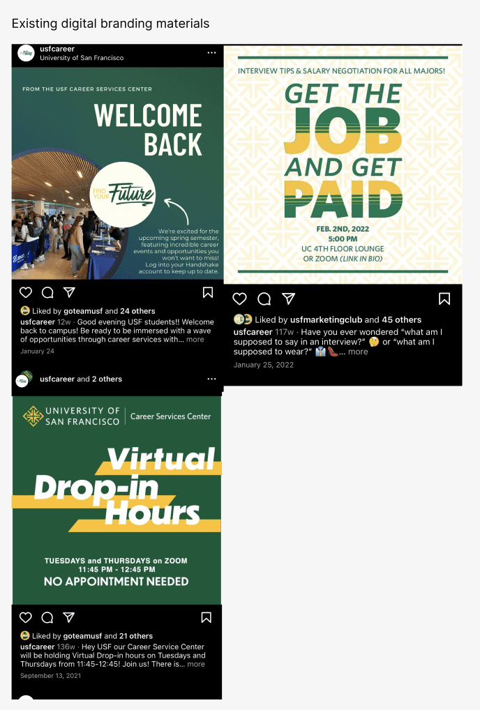 In order to update our brand voice, I needed to do research on what we already looked like. The goal was to not date ourselves as a professional organization. We needed to appeal to our audience of college students.